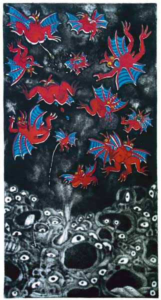 Thirteen devils are demonstrating all the things that are not polite to do.